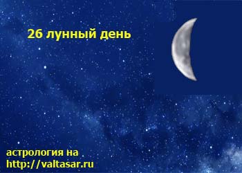 Двадцать шестые сутки лунного календаря астрологами признаны одними из наиболее энергетически опасных и нестабильных. Сегодня могут наблюдаться перепады настроения, ссоры на пустом месте и обидные провалы из-за досадных ошибок на любом фронте. Особенно тяжело в энергетическом плане перенести 26 лунный день эмоционально неустойчивым людям. Перепады настроения часто подталкивают их на совершение необдуманных поступков, последствия которых могут давать о себе знать в течение долгого времени.
