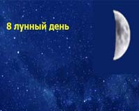 Восьмой лунный день считается стартом второй лунной недели. В этот период благоприятны раздумья и подведение неких промежуточных итогов. Также можно подумать о совершенных ошибках, скорректировать пла ... |