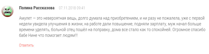 Количество амулетов. Некоторым читателям показалось подозрительно, что заказать амулет от ясновидящей довольно просто, несмотря на то, что целительница вручную изготавливает их в количестве около 10-12 штук в день. Ведь желающих получить в своё распоряжение столь ценную вещь должно быть гораздо больше!