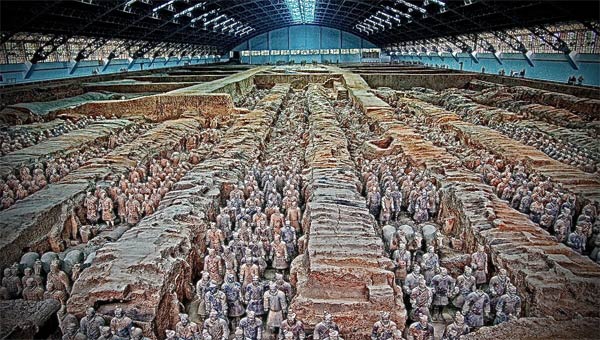 В 1974 году археологи в Китае обнаружили у мавзолея первого императора объединённого Китая Цинь Шихуанди в Сиане свыше 8100 глиняных статуй воинов, выполненных в натуральный рост 1,75 – 2,0 м., а также их лошадей. У каждой статуи воина свои черты лица, причёски волос, оружие. Есть в них металлические вставки из бронзы. Также недалеко от гробницы императора нашли скульптуры: музыкантов, прислуги, государственных служащих.