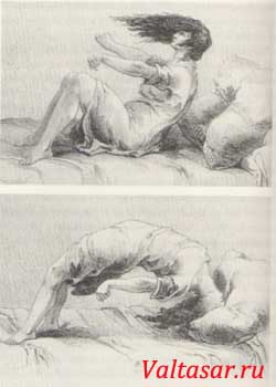 мелкие камешки, кусочки битого стекла и даже горящего угля. Женщины и мужчины вставали на голову, принимали причудливые позы и бились в конвульсиях. Это было во Франции в 18 веке в самом центре Парижа! Правительство, чтобы прекратить массовые ненормальные явления, издало указ о запрете подобных «шабашей», и каждого, кто пытался плясать, сажали в тюрьму. (из книги Луи Фигье – французского естествоиспытателя, писателя).