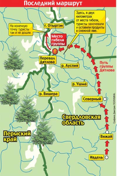 Итак, группа студентов и выпускников УПИ в количестве десяти человек (один в дороге заболел и вернулся назад) 26 января 1959 г. выехала из г. Ивдель Свердловской области. Миновав поселки Вижай и Северный, далее они отправилась своим ходом на лыжах в двухнедельный переход на гору Отортен (1234 м.) на северном Урале.