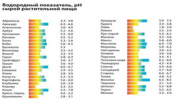 PH некоторых продуктов и фруктов приведены в таблицах (см. в приложении).