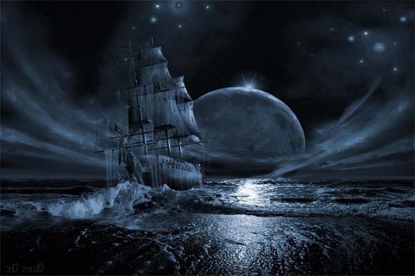 старинный парусник и Луна