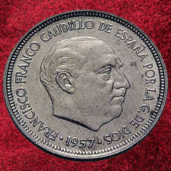5 песет (Испания). В переводе каталанское слово «peceta» означает «маленький кусочек». Этот дензнак ввели в обращение 19 октября 1868 года. Песета была в ходу до того, как её заменили на евро в 2002-м.