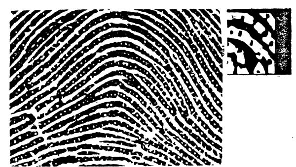 При этом замечено три основных вида рисунков: дуги, петли, завитки и 39 производных от них подвидов. Было исследовано распределение и сделана группировка отпечатков линий по: расовым, территориальным, национальным, половым признакам. И даже сопоставляли схожесть узоров по склонности к различными болезнями. Например, по наклону завитков пробовали установить связь с ростом человека и так далее…