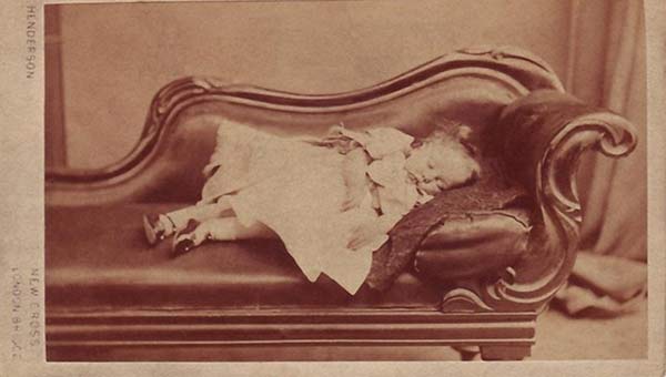 До нынешнего времени остались снимки с покойными детьми, ведь в Викторианскую эпоху детская смертность была чрезвычайно высокой. Виной тому были заболевания, от которых не было лекарств, наследственность и отсутствие гигиены. Нередко такие фото оставались единственным напоминанием о преждевременно почившем малыше или подростке. Сегодня посмертные фотографии в современном обществе являются редкостью, они представляют немалый интерес для исследователей-историков и коллекционеров.