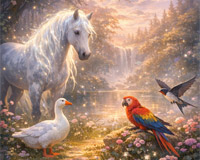 Собрались как-то конь, гусь, стриж и попугай на опушке, чтобы раз и навсегда решить вопрос: как на самом деле устроено мироздание? Конь тяжело вздохнул и сказал: — Мир — это огромная телега. Она ка ... |