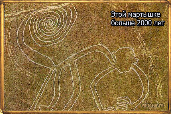 Для местной культуры рисунки в пустыне Наска весьма традиционны. В перуанском музее можно увидеть сосуд, выполненный в виде рыбы. Он поразительно похож на изображения в пустыне. Правда, все не так просто, как может показаться на первый взгляд. Непонятно почему у нарисованной обезьяны хвост закручен спиралью? Что собирается поведать человек-сова, если его рука направлена на восход звезды Арктура? О чем пытается предупредить безголовая птица, шея которой напоминает длинный и изогнутый шланг?