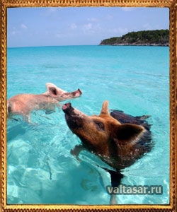 Каких только свиней здесь не найдешь! И пятнистые, и пестрые, и розовые, и темно-коричневые, одним словом, на любой вкус! Путешественники считают, что главной достопримечательностью Багамских островов является поросенок, рассекающий водную гладь.