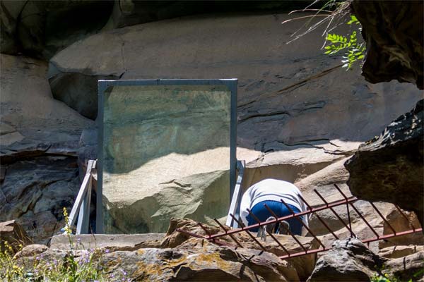 О профессионализме иконописца говорит даже то, что он выбрал идеальное место для своего творения. Верхняя терраса защищает лик от дождя и снега, а на нижней террасе удобно стоять и любоваться им. Грот сухой и хорошо прогревается солнцем. Сухой воздух, отсутствие влаги, продуваемость места дали возможность сохраниться изображению многие годы и практически в первозданном виде.