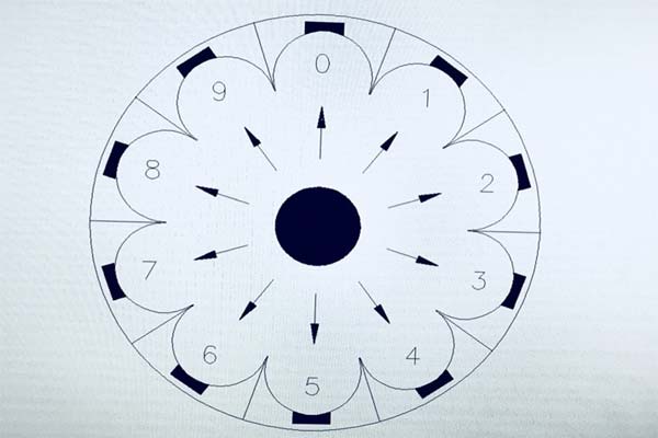 Я разделил круг на 10 секторов по 36 градусов каждый. Все секторы обозначил цифрами от 0 до 9. А выбор любого знака из 10 цифр предоставил волнам. С этой целью изготовил кустарным способом прибор. Он представляет собой диск диаметром 9 см. На середине зеркальной поверхности прибора я установил маленький шарик, который при колебаниях поверхности воды, катится и выбирает любую цифру, посещая сектор. На площадь круга действуют непредсказуемые точки сил поднятия волн, которые могут наклонять его в любую сторону или уравновешивать себя.